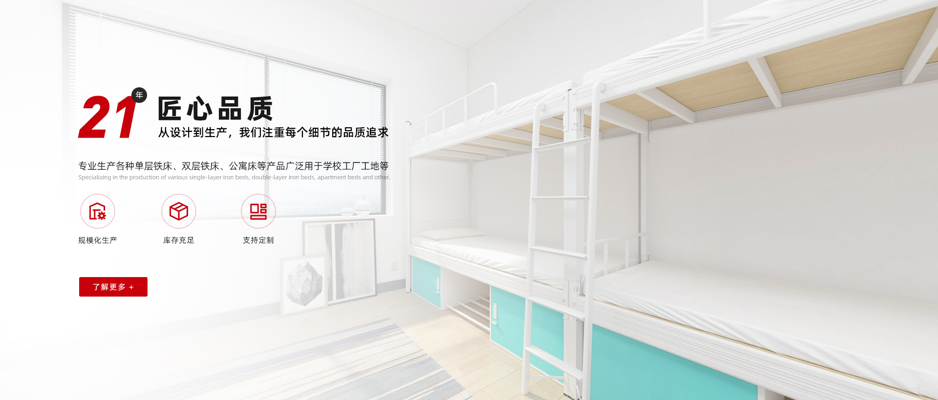 冠迪五金-看得見的鐵床生產(chǎn)實(shí)力 現(xiàn)代化生產(chǎn)制造企業(yè),為超過1000企業(yè)單位提供公寓宿舍鐵床鐵柜整體解決方案